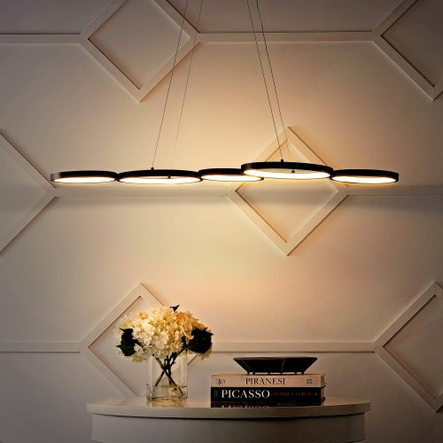 Zeniba 36″ Linear Adjustable Iron/Seeded Glass Rustic Farmhouse LED Pendant Brown 5 light