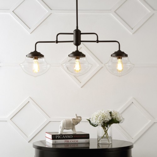 Abbott 34″ Farmhouse Industrial Iron/Glass Linear LED Pendant Oil Rubbed Bronze/Clear 4 Light