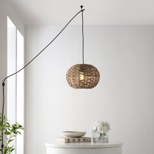 Isla 14″ Farmhouse Coastal Rattan 180″ Cord Plug-In or Hardwired LED Pendant Brown 1 Light