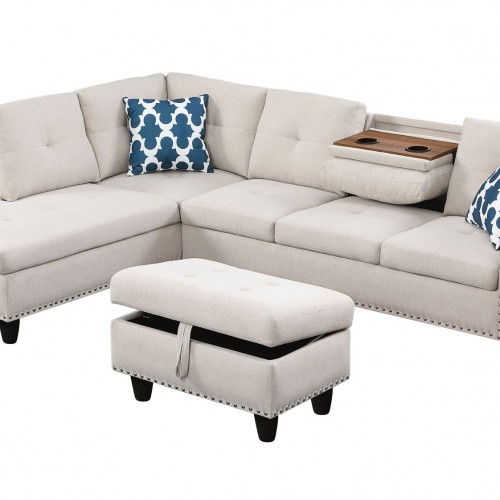 Alger – Wide Left Hand Facing Sofa & Chaise With Ottoman – Beige