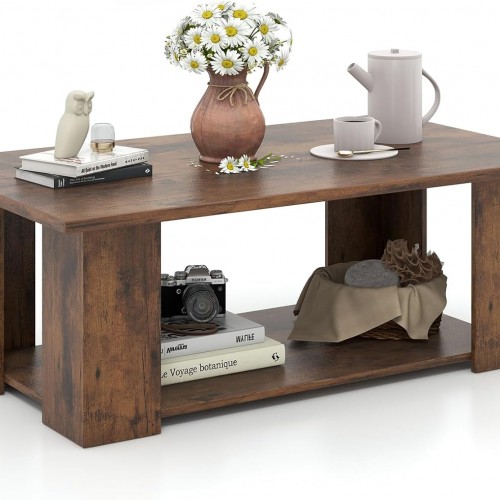 21in. Square All Wood End Table With Slat Shelf And Knotted Rope Accent Cottage/Weathered Grey Stain
