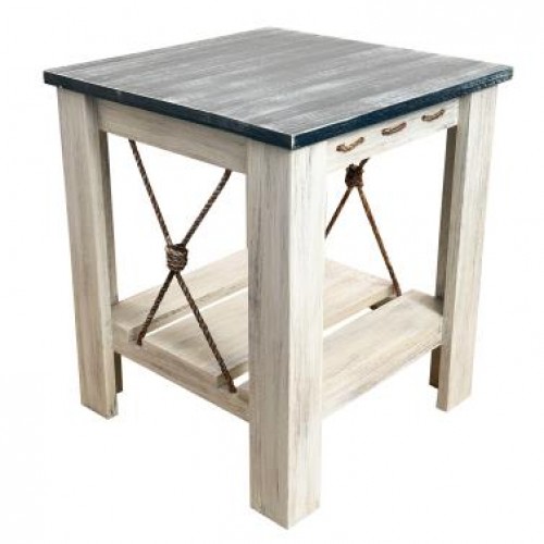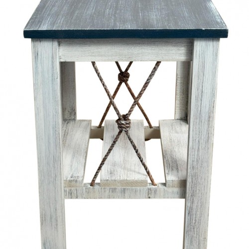 All Wood Side Table With Slat Shelf And Knotted Rope Accent – Weathered Navy Cottage/Weathered Navy