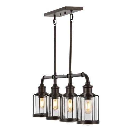 Abbott 34″ Farmhouse Industrial Iron/Glass Linear LED Pendant Oil Rubbed Bronze/Clear 4 Light