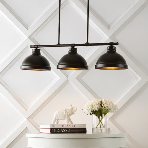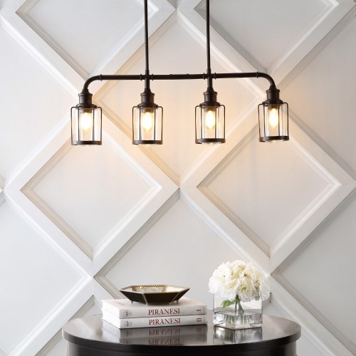 Abbott 34″ Farmhouse Industrial Iron/Glass Linear LED Pendant Oil Rubbed Bronze/Clear 4 Light