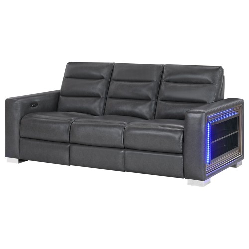 Yamein – Power Reclining Loveseat With Bookcase Arms And LED Lights – Charcoal
