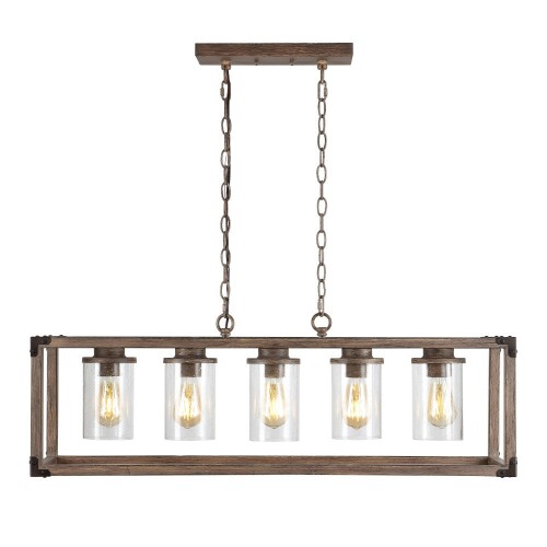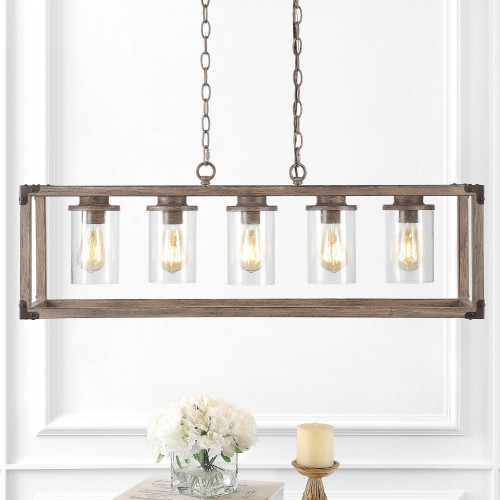 Zeniba 36″ Linear Adjustable Iron/Seeded Glass Rustic Farmhouse LED Pendant Brown 5 light