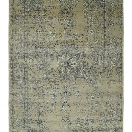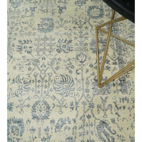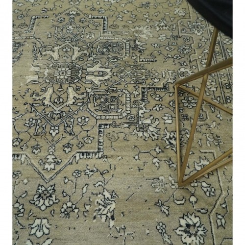 6×9 Fine Hand Knotted Beige and Black Traditional Vintage Persian Style Antique Wool Rug | AGR4 6×9