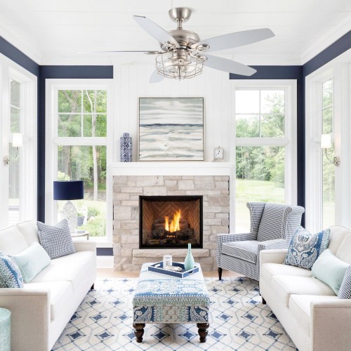 18-inch golden flush mount ceiling fan with light, the perfect fusion of smart home and retro industrial style.