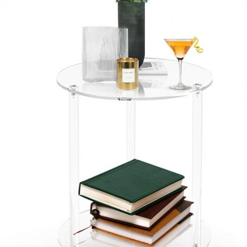 - 【Durable Construction and Enhanced Stability】This end table with storage expertly combines high-quality particleboard and metal for exceptional durability. The thick tabletop supports up to 110 lbs, while the two shelves can hold 50 lbs and 75 lbs, respectively. A robust 3.15-inch thick base ensures stability, and large back openings facilitate easy cord management