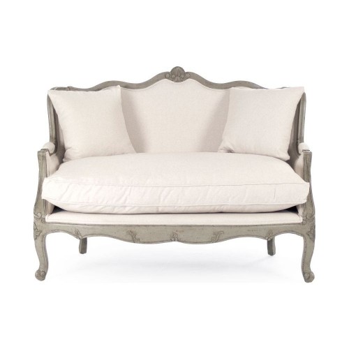 Cushions are urethane foam and wrapped in polyester fiber, then covered in muslin. Brass nail head trim is individually applied. Exposed wood is solid