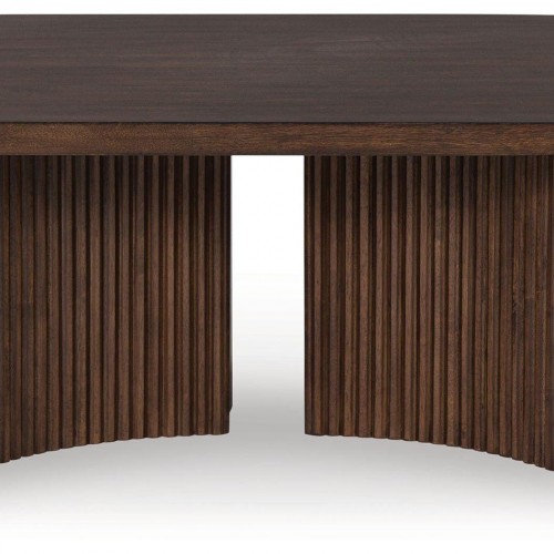 This end table exemplifies casual contemporary design with an urban vibe. Its rich brown finish is warm and inviting, and decor looks that much sleeker when displayed on the thick tabletop. A trend-right reeded base subtly nods to mid-century modern design. What a stunning reflection of your simple-meets-elegant sensibility.