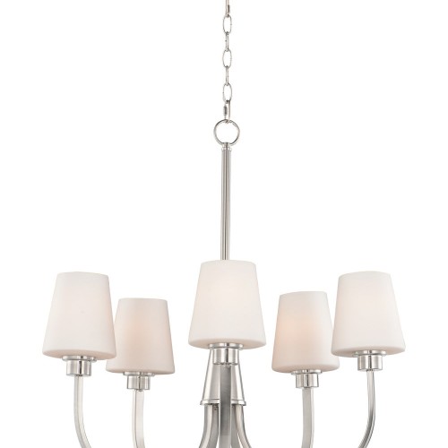 Commercial grade energy efficient lighting featuring linear frames of metal finished in Satin Nickel diffused by an etched opal acrylic creating an updated energy efficient classic.