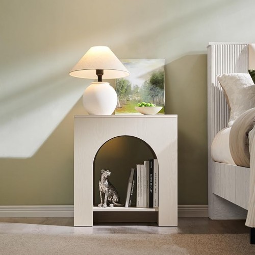 - Small Side Table for Small Spaces:This nightstand is small but has a lot of space,with a storage drawers and open wood shelf that provides a perfect storage space for your remote control, glasses, medicines and other essentials close at hand.The wide top is perfect for displaying a lamp, clock, potted plant or photo frame to offer warmth and personalized decoration.