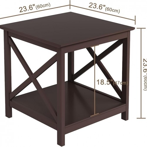 - 【3 Tier Shelf & End Table Set of 2】The table size is 23.6″D x 16″W x 16″H. Perfect for beside the sofa or in your living room . It can accommodate Alarm clock, succulent pots, decor stuff, books, and so on. The farmhouse color matches with any other furniture and gives a good look to the room