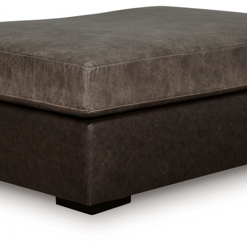 Stealing the show in a steel gray upholstery that’s wonderfully plush and so on trend, this oversized ottoman takes center stage when it comes to comfort and contemporary style. Exposed feet with a faux wood finish complete the look.