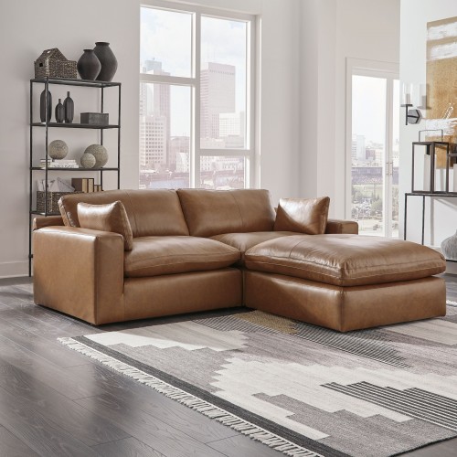 Emilia – 3 Pc. – 2-Piece Sectional Loveseat, Ottoman – Caramel