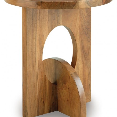 This accent table puts a new twist on vintage casual. Its finish is delightfully distressed, drawing attention to the saw mark planks arranged in an open architectural design. Place this unique piece next to a cozy chair to create a charming reading nook overflowing with visual intrigue.