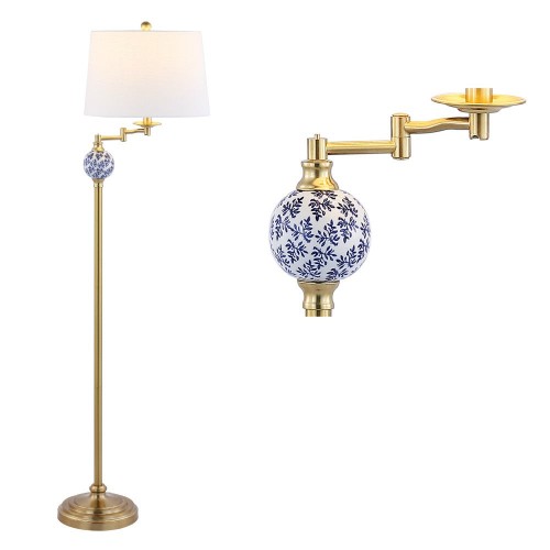 - This all-metal floor lamp is designed in a sleek brass gold finish